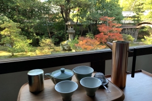また、江戸時代後期に伊勢神宮を模して造られた方丈前庭と狩野永岳によって描かれた金襖絵をご覧頂きながら、歴史に触れて頂きます。そして、朝日焼、開化堂、金網つじ、唐長などの現代の京都の工芸作家によってこの体験の為に作られた装飾品やお道具で、EN TEAさんの特別なお茶を楽しんで頂きます。